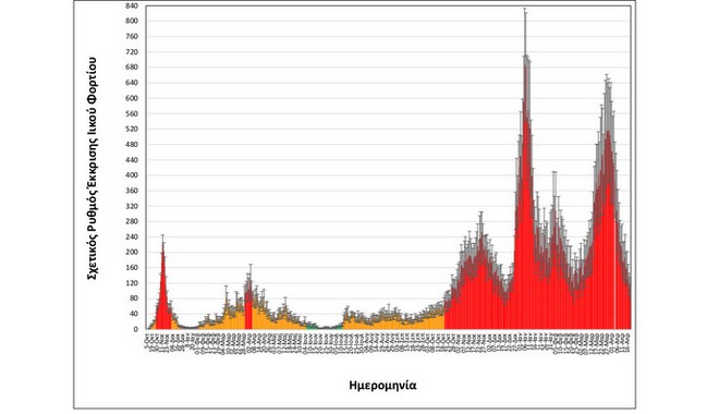 Συγκεκριμένα, στα δείγματα που λαμβάνονται καθημερινά στην είσοδο της εγκατάστασης επεξεργασίας λυμάτων Θεσσαλονίκης, αναφορικά με τις εξορθολογισμένες τιμές σχετικής έκκρισης ιικού φορτίου, η μέση τιμή των δύο πιο πρόσφατων μετρήσεων, δηλαδή, της Δευτέρας 18/04/2022 και της Τρίτης 19/04/2022 είναι: