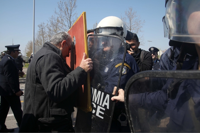 Ένας από τους συγκεντρωθέντες προσπάθησε να κινηθεί προς τον χώρο της εξέδρας των επισήμων, ωστόσο, η αστυνομία δεν του το επέτρεψε, με αποτέλεσμα να προκληθεί ένταση.