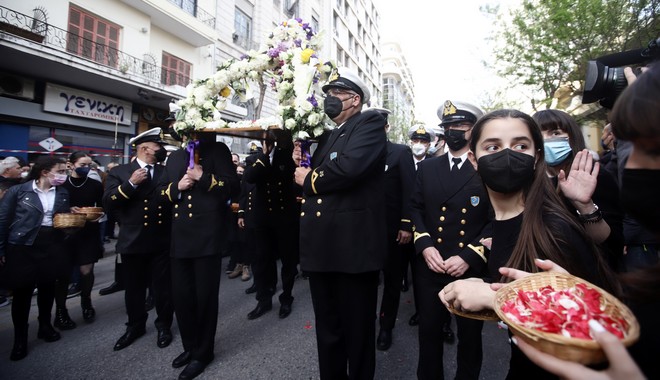 Η περιφορά του Επιταφίου του Ιερού Ναού Αγίου Μηνά ξεκίνησε, με πλήθος κόσμου βρίσκεται στους δρόμους του κέντρου για να παρακολουθήσει την πομπή της Μεγάλης Παρασκευής.