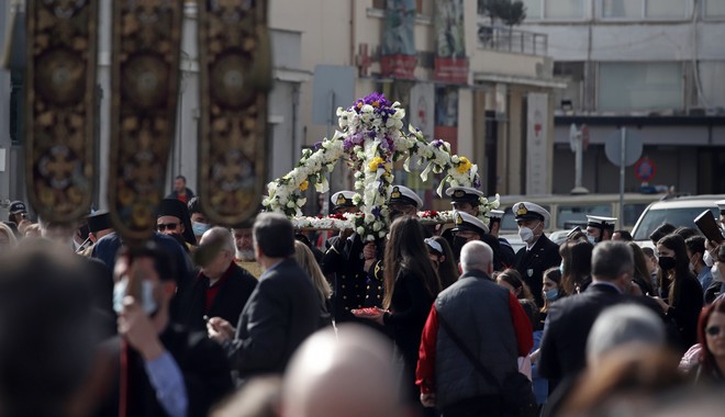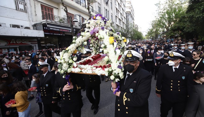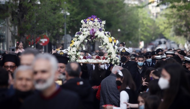 Εκατοντάδες πιστοί στους δρόμους της Θεσσαλονίκης, για την πρώτη περιφορά του Επιταφίου του Αγίου Μηνά.