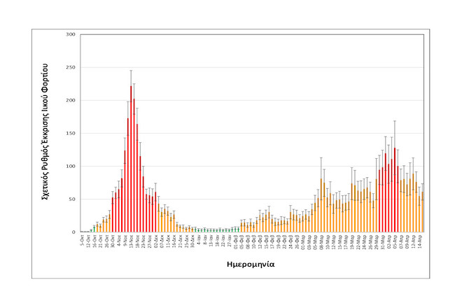 Συγκεκριμένα, στα δείγματα που λαμβάνονται καθημερινά στην είσοδο της Εγκατάστασης Επεξεργασίας Λυμάτων Θεσσαλονίκης, αναφορικά με τις εξορθολογισμένες τιμές σχετικής έκκρισης ιικού φορτίου, η μέση τιμή των δύο πιο πρόσφατων μετρήσεων, δηλαδή της Τετάρτης 14/04 και της Πέμπτης 15/04 είναι: