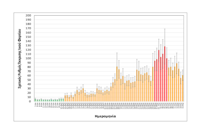 -Μειωμένη κατά 30% σε σχέση με τη μέση τιμή των δύο αμέσως προηγούμενων μετρήσεων, δηλαδή της Δευτέρας 12/04 και της Τρίτης 13/04.
