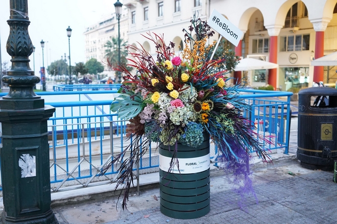 Οι προσωρινές εγκαταστάσεις που ονομάζονται «#ReBloom» είναι πρωτοβουλία του Makedonia Palace Hotel Thessaloniki σε συνεργασία με τους flower designers της Floral Creations by diana lina και τον δήμο Θεσσαλονίκης.