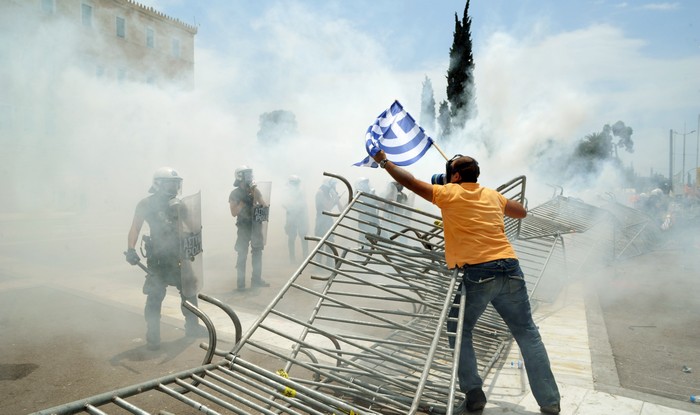 Την ώρα που στη Βουλή εξελισσόταν η συζήτηση για το Μεσοπρόθεσμο, έξω από το κτίριο, στους δρόμους γύρω από το Σύνταγμα ξεσπούσαν βίαιες συγκρούσεις, καθώς οργισμένοι διαδηλωτές εξέφρασαν την αντίθεσή τους στο Μεσοπρόθεσμο και τα σκληρά μέτρα που αυτό φέρνει.