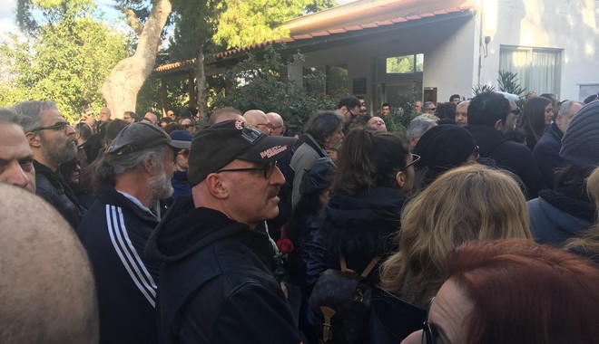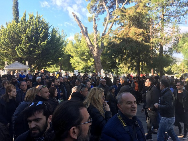 Πλήθος κόσμου συγκεντρώθηκε από νωρίς στο κοιμητήριο της Νέας Μάκρης για να αποχαιρετήσει τον μεγάλο καλλιτέχνη.