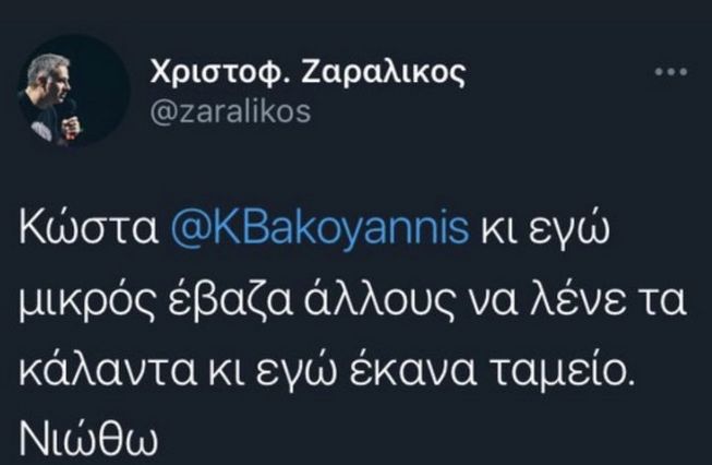 Ο λογαριαμός του Χριστόφορου Ζαραλίκου στο twitter "έπεσε" ανήμερα την Πρωτοχρονιά. Τι ανέφερε για τον Κώστα Μπακογιάννη στο τελευταίο του tweet ο Ελληνας κωμικός.