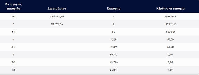 Το εξωπραγματικό ποσό των 8.961.818, 66 ευρώ στην πρώτη κατηγορία έδινε το τζόκερ στην κλήρωση της Κυριακής (21/08), ωστόσο για πολλοστή φορά δεν βρέθηκε νικητής. Στην κλήρωση της ερχόμενης Τρίτης όλα τα βλέμματα.