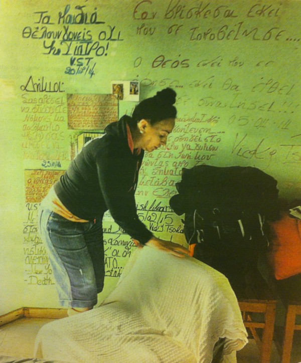 Στο δίκλινο δωμάτιο όπου νοσηλεύεται η Βίκυ Σταμάτη οι τοίχοι και οι πόρτες είναι ζωγραφισμένα και γεμάτα με φράσεις και τσιτάτα όπως “Εάν βρίσκεσαι εκεί που σε τοποθέτησε ο Θεός, εκεί που σε άφησε εκεί θα έρθει να σε συναντήσει” ενώ υπογράφει με το «Vicky Stam. Tsohas. Alma libre» που θα πει “ελεύθερη ψυχή”.