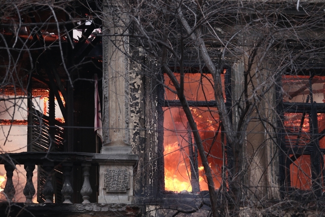 Επίθεση έλαβε χώρα όμως και σε κατάληψη της πόλης λίγο μετά τις 15.00 το μεσημέρι. Λίγο αργότερα, ξέσπασε φωτιά κάτω από αδιευκρίνιστες μέχρι στιγμής συνθήκες, πιθανόν από εμπρησμό σε παλιό ακατοίκητο και διώροφο νεοκλασικό κτίριο που τελεί υπό κατάληψη από αντιεξουσιαστές, επί της Λ. Στρατού19, το οποίο καίγεται από άκρη σε άκρη και ευτυχώς δεν έχει διαπιστωθεί να υπήρχαν μέσα άτομα.