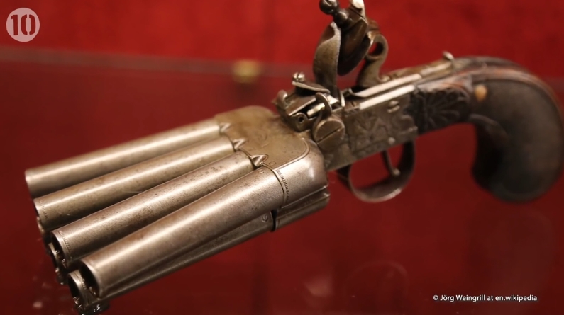 Το σπάνιο duck’s foot pistol: Μπορούσε να ρίξει από τέσσερις κάνες, με τη μία. Η κατασκευή του έγινε στις αρχές του 19ου αιώνα και σήμερα θεωρείται συλλεκτικό, με την αξία του να φτάνει τις 3.000 λίρες.