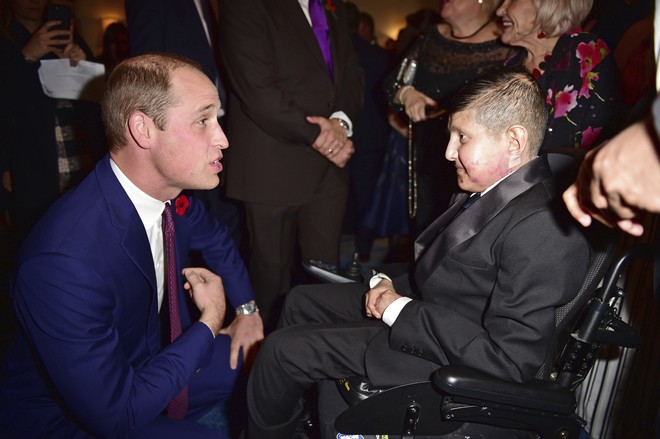 Britain's Prince William meets Moin Younis as he attends the Pride of Britain Awards 2017, at Grosvenor House, Park Lane, London, Monday, Oct. 30, 2017. (Andy Stenning/Pool Photo via AP) ap