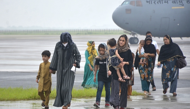 Οικογένειες που απομακρύνθηκαν από το Αφγανιστάν, κατέφθασαν στην Ινδία. ap