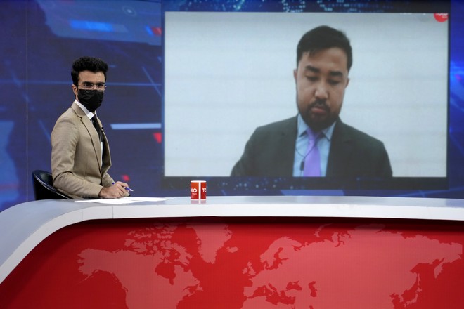 Άνδρες τηλεοπτικοί παρουσιαστές στο Αφγανιστάν φορούν μάσκες προσώπου στον “αέρα” για να δείξουν την αλληλεγγύη τους στις γυναίκες τηλεπαρουσιάστριες, μετά την εντολή των Ταλιμπάν να καλύπτουν τα πρόσωπά τους.