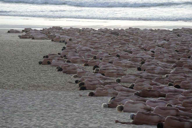 Στην παραλία Μπόντι του Σίδνεϊ συγκεντρώθηκαν περίπου 2.500 άνθρωποι, όπου πόζαραν γυμνοί στον Αμερικανό φωτογράφο Σπένσερ Τιούνικ, για να ευαισθητοποιήσουν την κοινή γνώμη για τον καρκίνο του δέρματος.