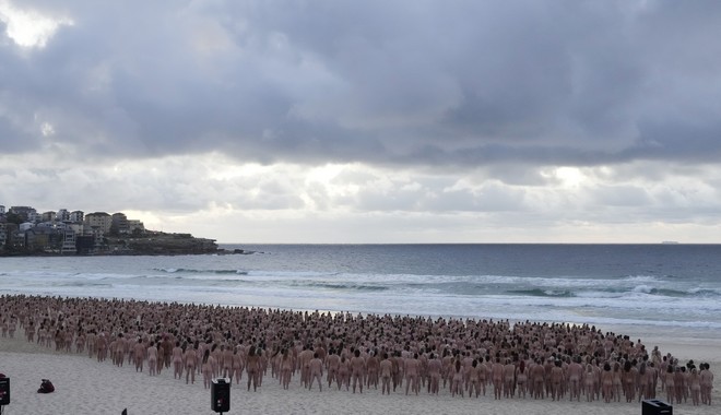 Περίπου 2.500 άνθρωποι συγκεντρώθηκαν σήμερα Σάββατο (26/11) στην παραλία Μπόντι του Σίδνεϊ και πόζαραν γυμνοί στο φακό του Αμερικανού φωτογράφου, Σπένσερ Τιούνικ, σε μια προσπάθεια ευαισθητοποίησης της κοινής γνώμης για τον καρκίνο του δέρματος.