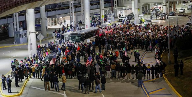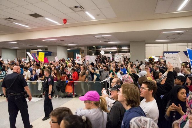 Συγκεντρώσεις διαμαρτυρίας οργανώθηκαν σε πολλά αεροδρόμια των ΗΠΑ ενώ ομοσπονδιακή δικαστής στο Μπρούκλιν της Νέας Υόρκης, αποφάσισε την προσωρινή αναστολή του μέτρου, το οποίο επικρίθηκε από ορισμένους από τους πιο στενούς συμμάχους της χώρας.