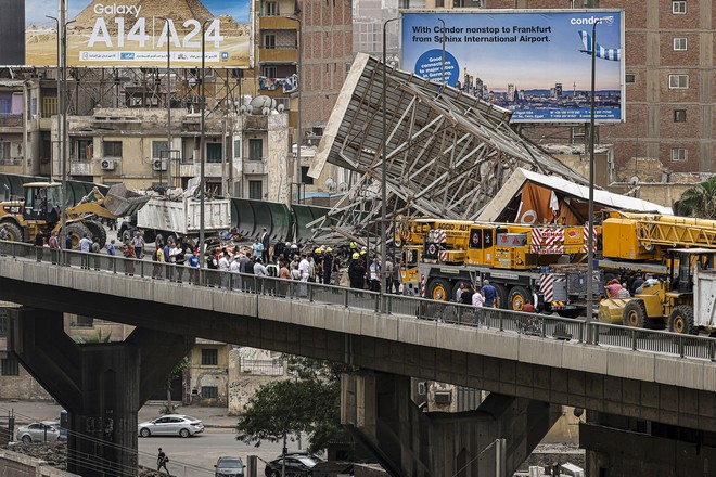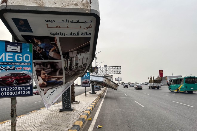 Κατάρρευση πινακίδας σε δρόμο του Καΐρου 2023 Photo by Khaled DESOUKI / AFP