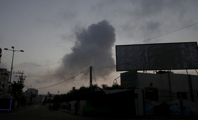 Καπνός πάνω από τη Γάζα μετά τις εκτοξεύσεις δεκάδων ρουκετών εναντίον του Ισραήλ και τα πολύνεκρα πλήγματα του εβραϊκού κράτους εναντίον της Χαμάς AP Photo/Hatem Moussa