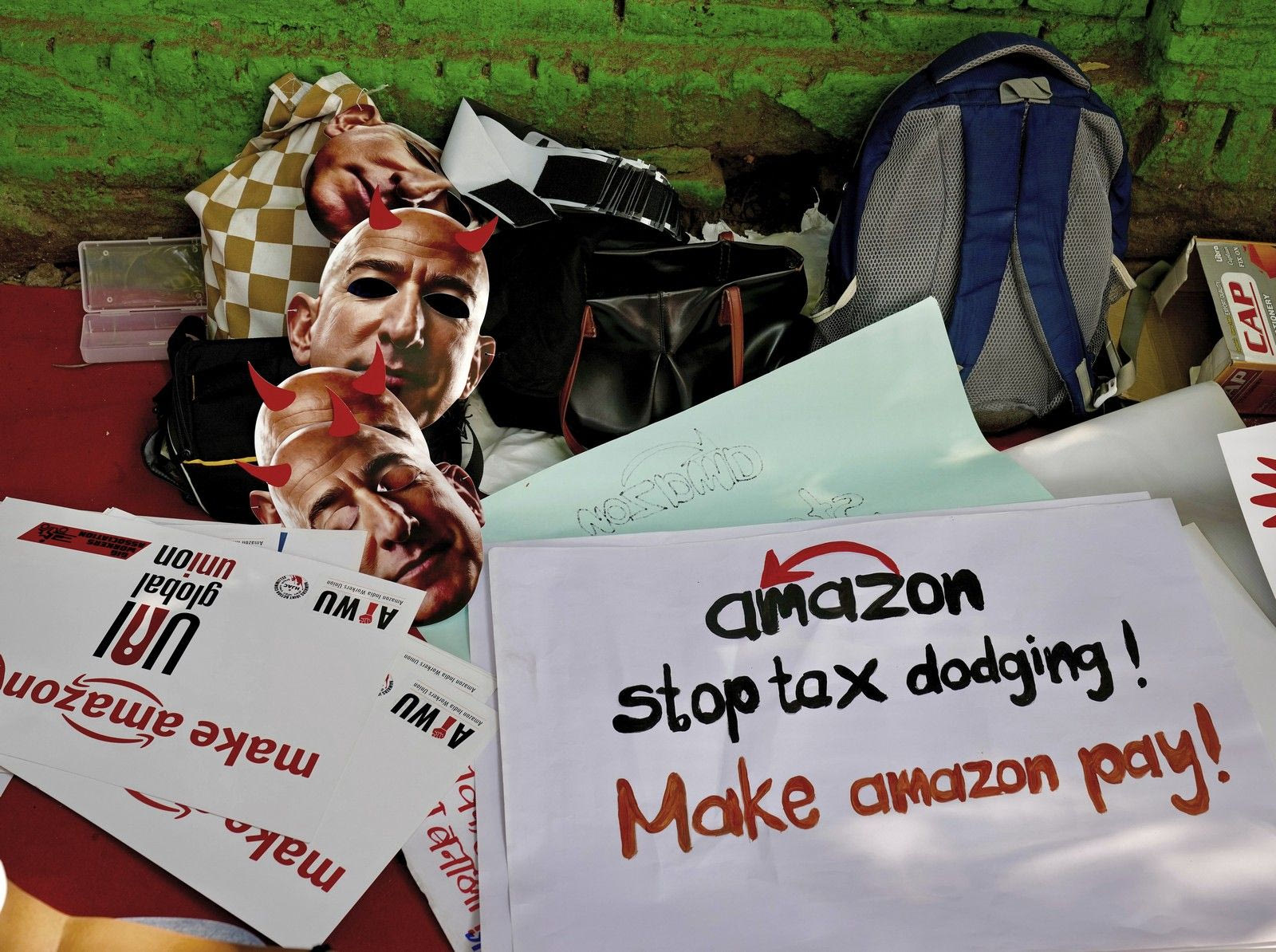 Περισσότεροι από 200 εργαζόμενοι συγκεντρώθηκαν στους δρόμους του Νέου Δελχί, στην Ινδία, φορώντας μάσκες με το πρόσωπο του ιδρυτή της Amazon, Τζεφ Μπέζος. Τα αιτήματά τους εστιάζουν σε βασικά δικαιώματα όπως: δίκαιους μισθούς, ασφαλείς συνθήκες εργασίας και την αναγνώριση του δικαιώματός τους να οργανώνονται σε συνδικάτα.