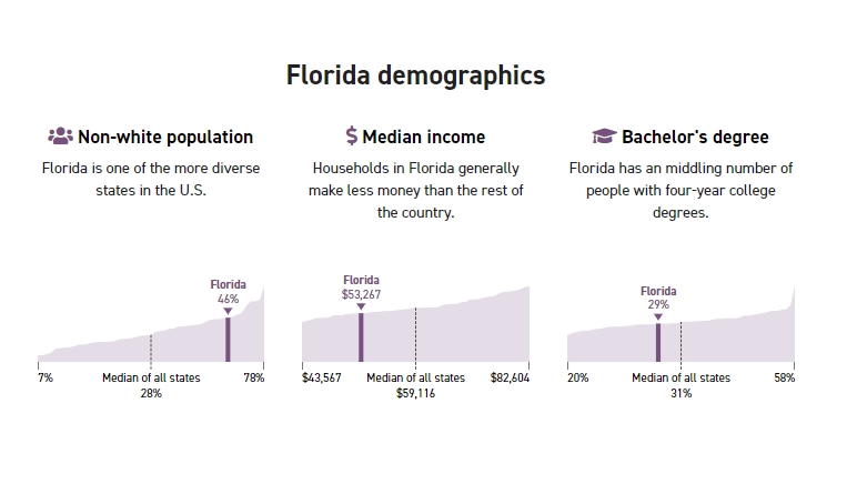 Η Φλόριντα γίνεται η 8η κατά σειρά Πολιτεία που αυξάνει τον κατώτατο μισθό, κάτι που δεν έχει γίνει από την κεντρική διοίκηση. Ο ομοσπονδιακός κατώτατος μισθός είναι στα $7.25 την ώρα και δεν έχει αυξηθεί από το 2009 και μετά. Ένας υπάλληλος που εργάζεται με πλήρη απασχόληση με έναν ελάχιστο μισθό, θα λάμβανε περί τα $15,000 το χρόνο, αλλά σύμφωνα με το GoBankingRates, ο χαμηλότερος μέσος όρος νοικοκυριού ανά Πολιτεία καταγράφεται ετησίως στην Πολιτεία του Mississippi με $58,000.