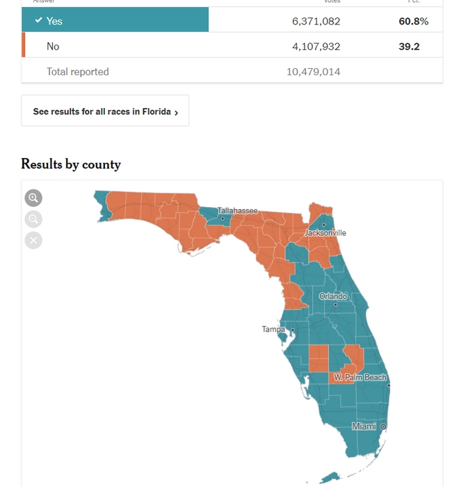 Ένα από τα... παράδοξα των αμερικανικών εκλογών έλαβε χώρα στην Πολιτεία της Φλόριντα όπου ήρθε πρώτος ο Τραμπ αλλά οι πολίτες ψήφισαν και υπέρ κοινωνικών μέτρων.