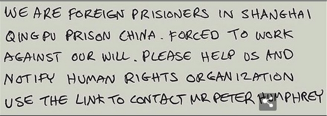 Να σημειωθεί ακόμα, ότι ο Peter Humphrey, του οποίου το όνομα αναγράφεται στην κάρτα, είναι δημοσιογράφος και είχε καταδικαστεί σε δύο έτη φυλάκισης καθώς είχε παραβιάσει νομοθεσίες περί ιδιωτικότητας. Το σωφρονιστικό ίδρυμα που φιλοξενούνταν ήταν το ίδιο στο οποίο κρατούνται και οι φυλακισμένοι που έγραψαν το απελπισμένο μήνυμα.