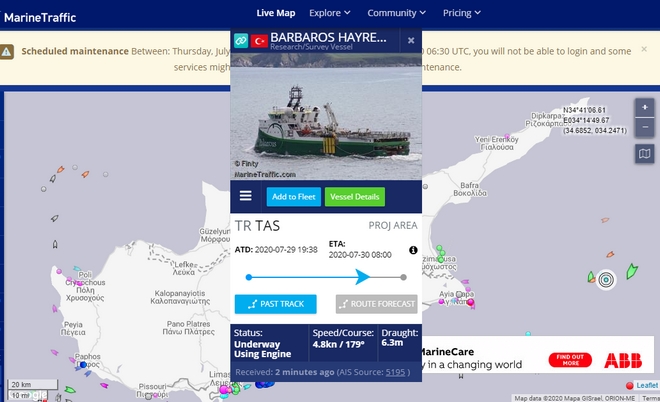 Η κίνηση του Barbaros επιβεβαιώνεται και από το σύστημα εντοπισμού των πλοίων marinetraffic, όπου διακρίνεται να έχει βγει από το λιμάνι που βρισκόταν, χωρίς ωστόσο να δηλώνεται ο τελικός προορισμός του.