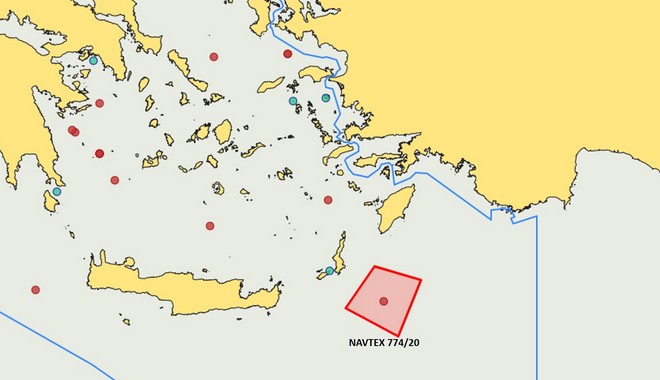 Η Τουρκία διαμαρτύρεται για ελληνική NAVTEX και διατείνεται πως αυτή καλύπτει δική της δεσμευμένη περιοχή στην οποία θα κάνει άσκηση με πραγματικά πυρά. Η περιοχή, ωστόσο, που αναφέρει βρίσκεται μια ανάσα από την Κάρπαθο.