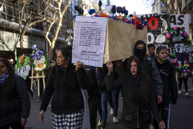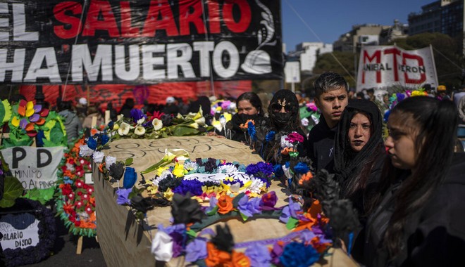 Μια νεκρώσιμη πομπή έλαβε χώρα στο Μπουένος Άιρες για τον κατώτατο μισθό, ο οποιός εξανεμίζεται λόγω πληθωρισμού AP