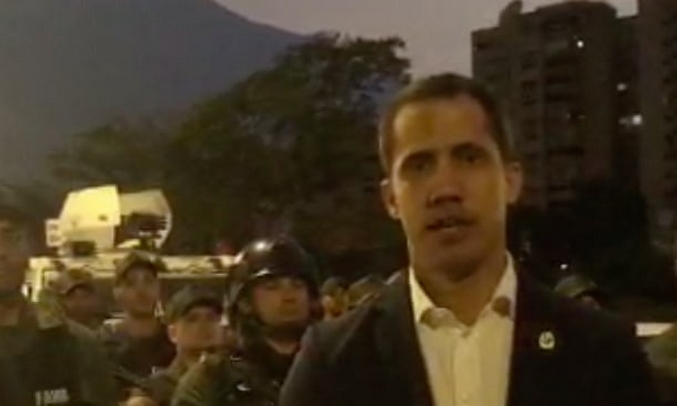 Ο ηγέτης της αντιπολίτευσης και αυτοανακηρυχθείς πρόεδρος Χουαν Γκουαϊδό εμφανίστηκε σε video στο οποίο καλούσε το στρατό να πάρει την κατάσταση στα χέρια του έτσι ώστε “να προστατέψει το σύνταγμα της χώρας”.