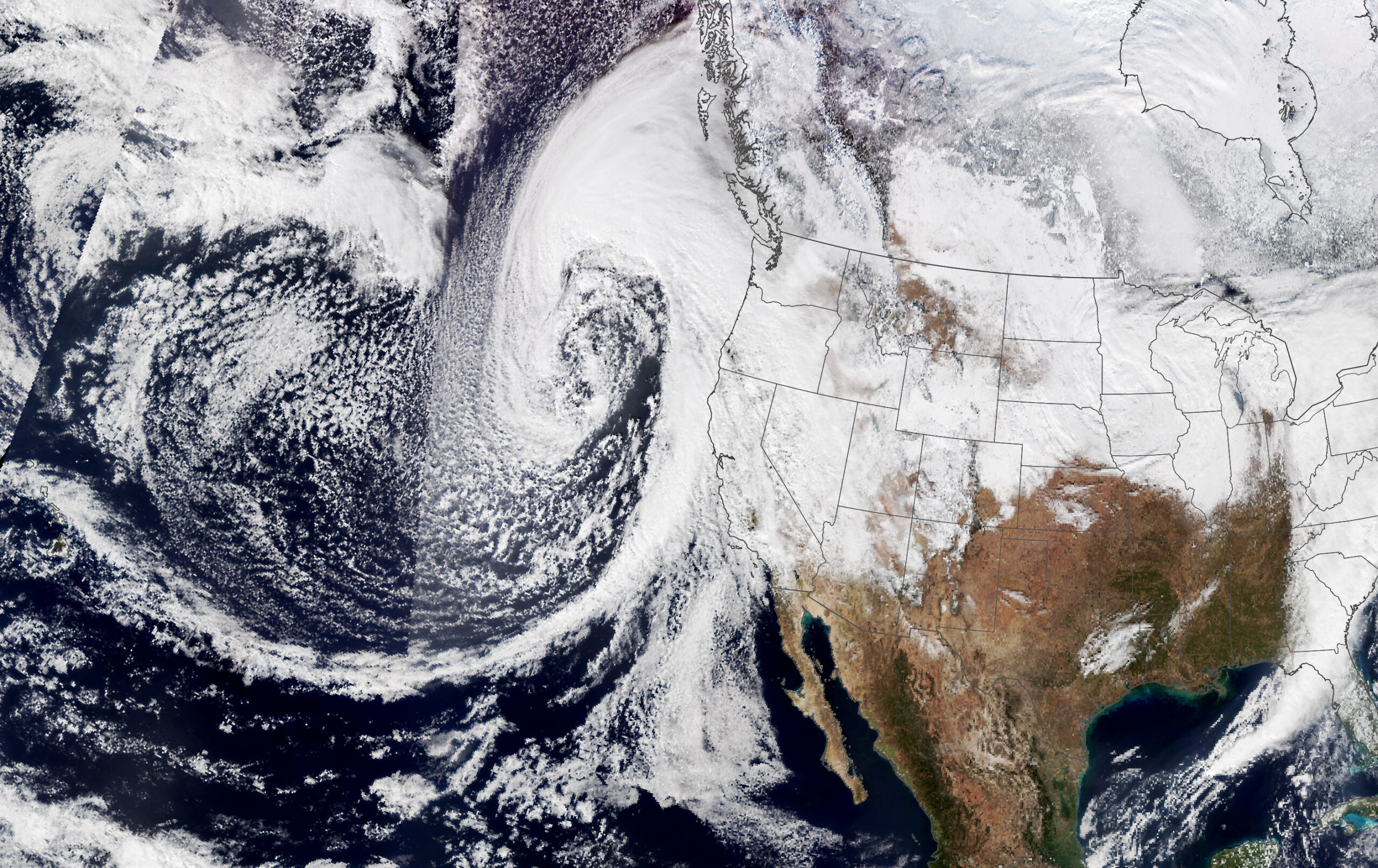 Η παρακάτω εικόνα αποκτήθηκε στις 4 Ιανουαρίου 2023, στις 1:20 μ.μ. από τη σουίτα Visible Infrared Imaging Radiometer Suite (VIIRS) του δορυφόρου NOAA-20. Δείχνει την καταιγίδα καθώς δυνάμωνε, γεγονός που συνέβαλε στην υψηλή ταχύτητα του ανέμου. Όταν η πίεση του αέρα σε έναν κυκλώνα μεσαίου γεωγραφικού πλάτους πέφτει γρήγορα και οι άνεμοι εντείνονται, αυτά τα συστήματα υπόκεινται σε μια διαδικασία που οι μετεωρολόγοι καλούμε κυκλογέννεση.