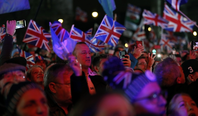 Μετά τις 23:00 (τοπική ώρα) το βράδυ της Παρασκευής μπροστά από το βρετανικό κοινοβούλιο υποστηρικτές του Brexit φιλιόντουσαν, αγκαλιάζονταν και τραγουδούσαν “God Save the Queen” κρατώντας βρετανικές σημαίες εν μέσω των καπνών από τα πυροτεχνήματα.