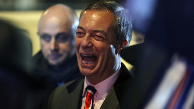 Ο ηγέτης του Brexit Ναιτζελ Φάρατζ πανηγυρίζει AP