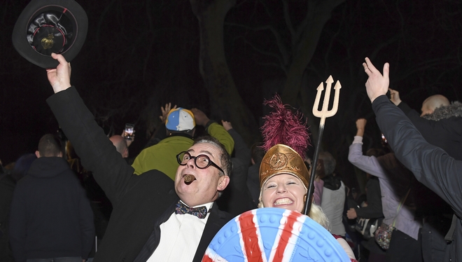 Κόσμος γιορτάζει στο Λονδίνο το Brexit AP