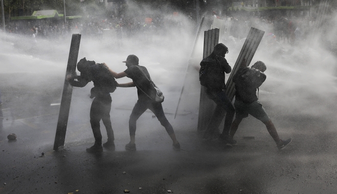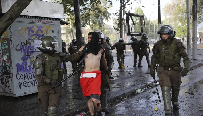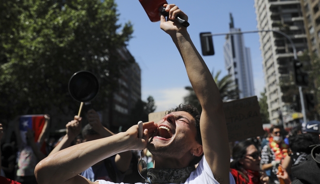 Οι διαδηλώσεις συνεχίστηκαν χθες — χιλιάδες πολίτες συγκεντρώθηκαν σε διάφορα σημεία της πρωτεύουσας, μιας μητροπολιτικής περιοχής 7,5 εκατ. κατοίκων — ενώ το Σαντιάγο πέρασε την τέταρτη συνεχόμενη νύχτα του με απαγόρευση κυκλοφορίας.