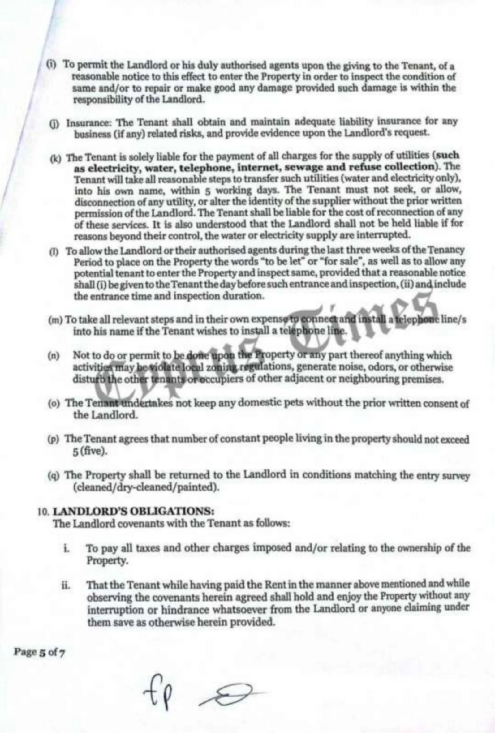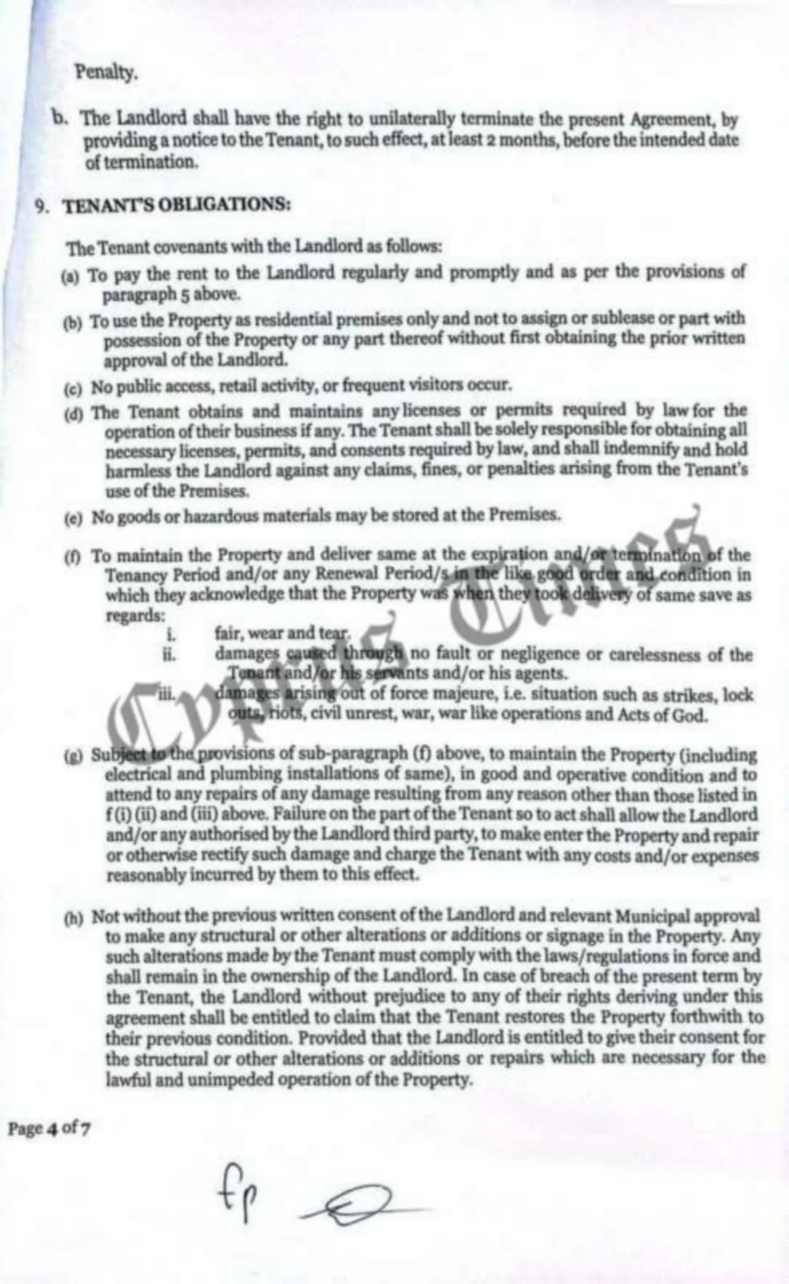 Απαγορεύεται οποιαδήποτε άλλη χρήση χωρίς γραπτή έγκριση. Αν ο ενοικιαστής χρησιμοποιεί το ακίνητο ως γραφείο παραβιάζει το συμβόλαιο.