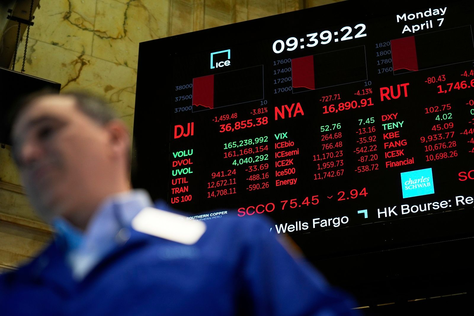 Σημειώνεται πως το Χρηματιστήριο της Νέας Υόρκης παρουσίασε έντονες διακυμάνσεις τη Δευτέρα (7/4) καθώς άνοιξε καταγράφοντας σημαντική πτώση, περίπου 3%.