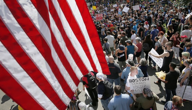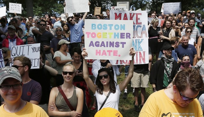 Περίπου 40.000 διαδηλωτές συγκεντρώθηκαν το Σάββατο στη Βοστόνη για να καταγγείλουν τον ρατσισμό και την ακροδεξιά, μια κινητοποίηση που αμαυρώθηκε από αψιμαχίες με την αστυνομία εν μέσω ηλεκτρισμένου κλίματος στις ΗΠΑ μετά τα βίαια επεισόδια της Σάρλοτσβιλ και τις δηλώσεις του Ντόναλντ Τραμπ που ακολούθησαν.