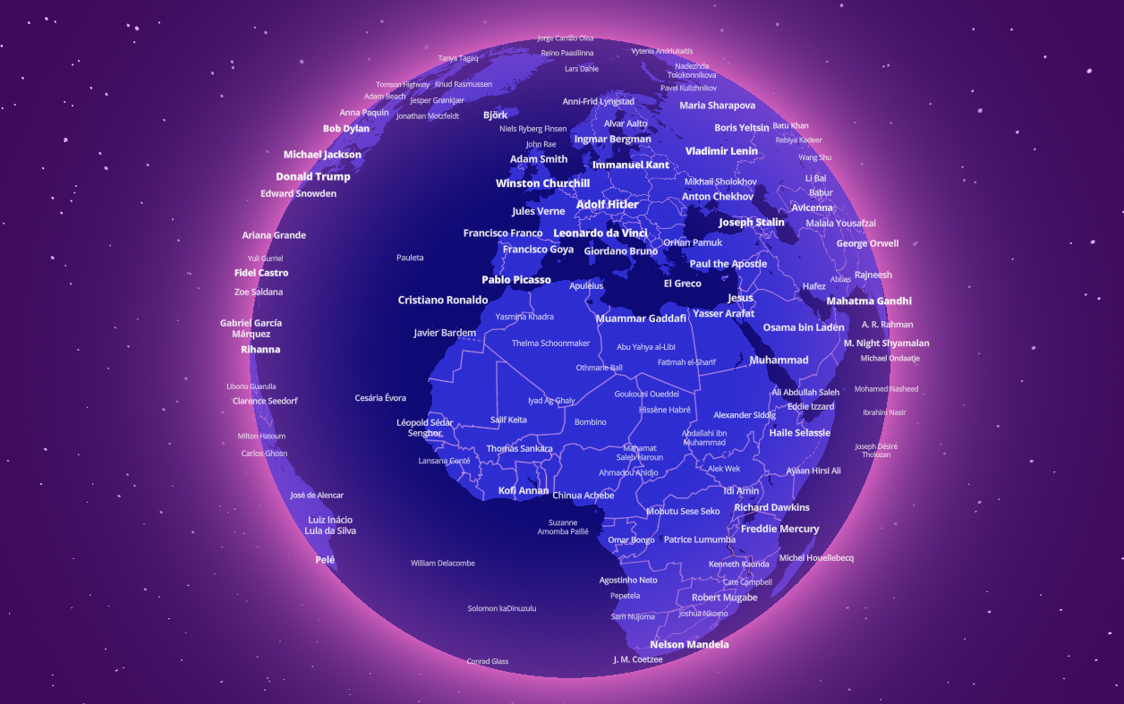 Τον χάρτη με τις διάσημες προσωπικότητες σχεδίασε ο ερευνητής Topi Tjukanov χρησιμοποιώντας την τεχνολογία της Mapbox και βασίζεται σε μια μελέτη που δημοσιεύτηκε τον Ιούνιο στο περιοδικό Nature.