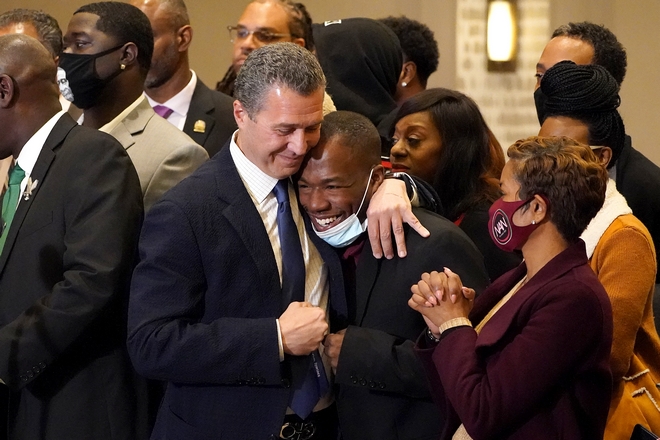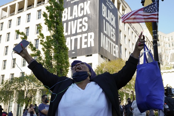 Το συγκεντρωμένο πλήθος έξω από το δικαστήριο υποδέχθηκε με χειροκροτήματα την καταδικαστική απόφαση, φωνάζοντας συνθήματα όπως “Δικαιοσύνη” και “Black lives matter”.