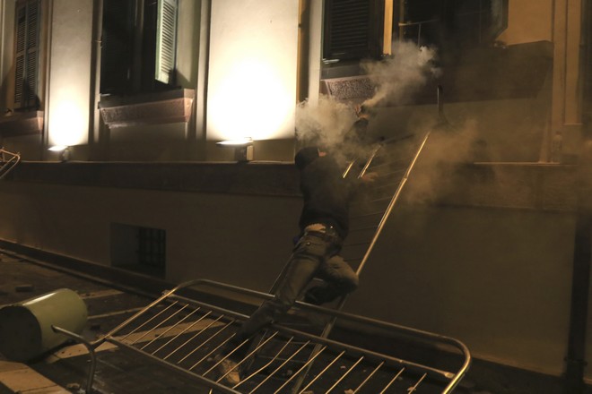 Αποκορύφωμα της έντασης ήταν η στιγμή που έβαλαν φωτιά στο χριστουγεννιάτικο δέντρο που είχε στηθεί στην πρωτεύουσα.