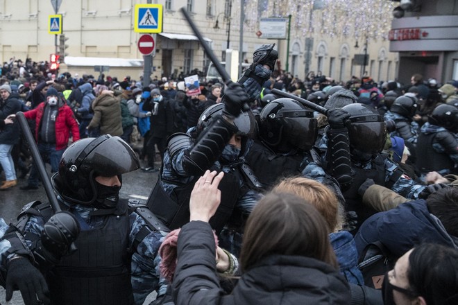 Στη Μόσχα, διαδηλωτές και αστυνομικοί συγκρούστηκαν μεταξύ τους, με τους πρώτους να επιδίδονται σε χιονοπόλεμο εναντίον των δυνάμεων ασφαλείας και τους δεύτερους να απαντούν με τα γκλομπ. Νωρίς το βράδυ, εκατοντάδες άνθρωποι συγκεντρώθηκαν κοντά στη φυλακή Ματρόσκαγια Τισίνα, όπου κρατείται ο Ναβάλνι. Ισχυρές αστυνομικές δυνάμεις τους ξυλοκόπησαν και διέλυσαν το πλήθος.