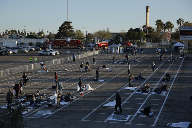 Στους περισσότερους δόθηκαν στρώματα, όμως πολλοί ήταν αυτοί που κλήθηκαν να κοιμηθούν στο έδαφος. Σύμφωνα με εκπρόσωπο του Λας Βέγκας το “Catholic Charities” αναμένεται να ανοίξει μες την εβδομάδα, ενώ προσωπικό εξετάζει τους αστέγους στο πάρκιγνκ και παρέχει ιατρική βοήθεια εάν παρατηρήσουν “επικίνδυνα” συμπτώματα.
