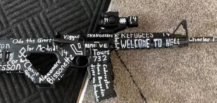 Σημειώνεται επίσης πως τέσσερα ονόματα Σέρβων που αγωνίστηκαν κατά της κυριαρχίας των Οθωμανών στα Βαλκάνια, γραμμένα στο κυριλλικό αλφάβητο, φαίνονται επίσης στα όπλα του δράστη, όπως αναφέρει το Associated Press.