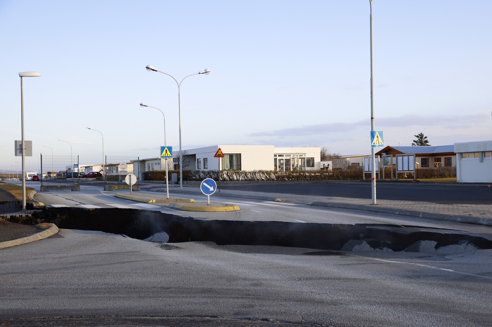 Aτμός βγαίνει από σχισμή που προκάλεσε σε δρόμο του Γκρίνταβικ, η σεισμική δραστηριότητα. AP Photo Brynjar Gunnarsson