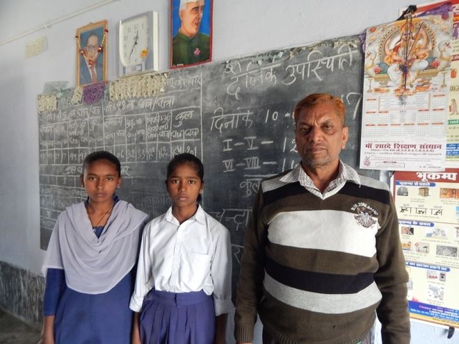 H Priyanshu (δεξιά) με μία συμμαθήτριά της και τον καθηγητή τους