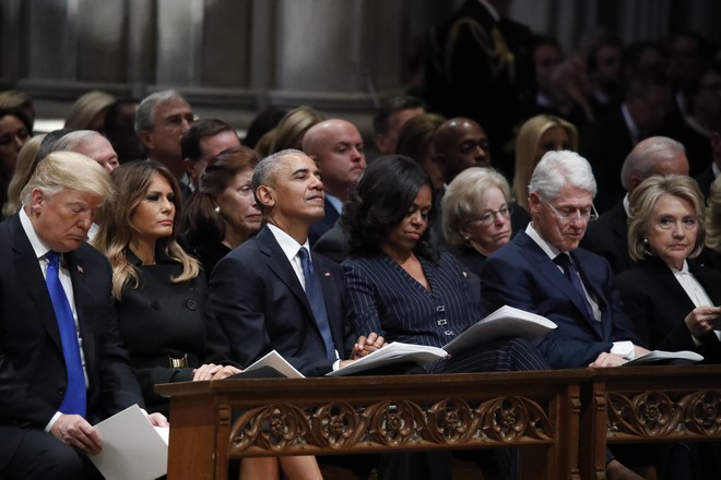 Ο Ντόναλντ Τραμπ και τέσσερις πρώην πρόεδροι των ΗΠΑ παρέστησαν την Τετάρτη στην κηδεία, με τιμές αρχηγού κράτους, του Τζορτζ Χέρμπερτ Ουόκερ Μπους, μια σπάνια στιγμή ενότητας σε μια διχασμένη χώρα.
