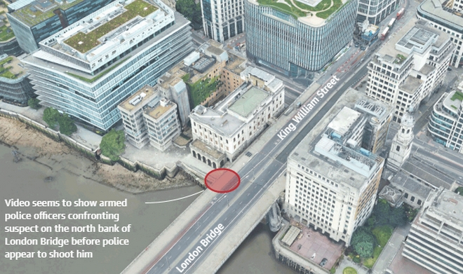 Σύμφωνα με την αστυνομία, ο άνδρας αυτός παρευρέθηκε χθες σε διάλεξη που είχε διοργανωθεί στο Fishmonger’s Hall, ένα κτίριο που βρίσκεται στην βόρεια άκρη της Γέφυρας του Λονδίνου, μέσα στο οποίο άρχισε την επίθεσή του. Μετά ο δράστης συνέχισε την επίθεση και πάνω στην Γέφυρα του Λονδίνου, προτού τεθεί υπό έλεγχο από περαστικούς και στη συνέχεια πέσει νεκρός από τα πυρά της αστυνομίας, πέντε λεπτά αφότου αυτή ειδοποιήθηκε από τους παρευρισκόμενους στις 13:58 τοπική ώρα (15:58 ώρα Ελλάδος).