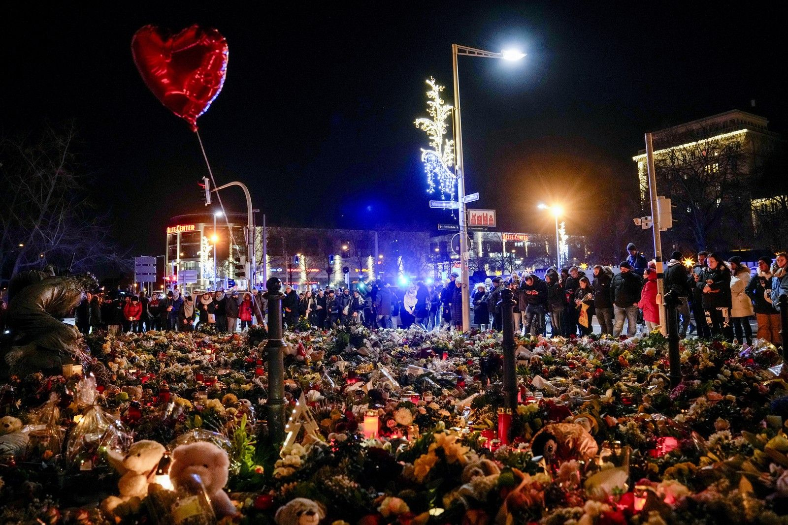 Στην Πλατεία της Παλιάς Αγοράς, όπου βρίσκεται η υπαίθρια χριστουγεννιάτικη αγορά που έγινε την περασμένη Παρασκευή στόχος του 50χρονου Σαουδάραβα Ταλέμπ Α., συγκεντρώθηκαν νωρίτερα απόψε περισσότεροι από 4000 άνθρωποι, ένωσαν τα χέρια τους σιωπηλά και με αναμμένα κεριά εξέφρασαν αφενός τη θλίψη τους για τα θύματα της επίθεσης και αφετέρου την αντίθεσή τους στις ρητορικές και τις πρακτικές μίσους. «Θέλουμε να πενθήσουμε – Καμία ευκαιρία στο μίσος», ήταν το κεντρικό σύνθημα και καθ’ όλη τη διάρκεια της εκδήλωσης επικρατούσε απόλυτη ησυχία.