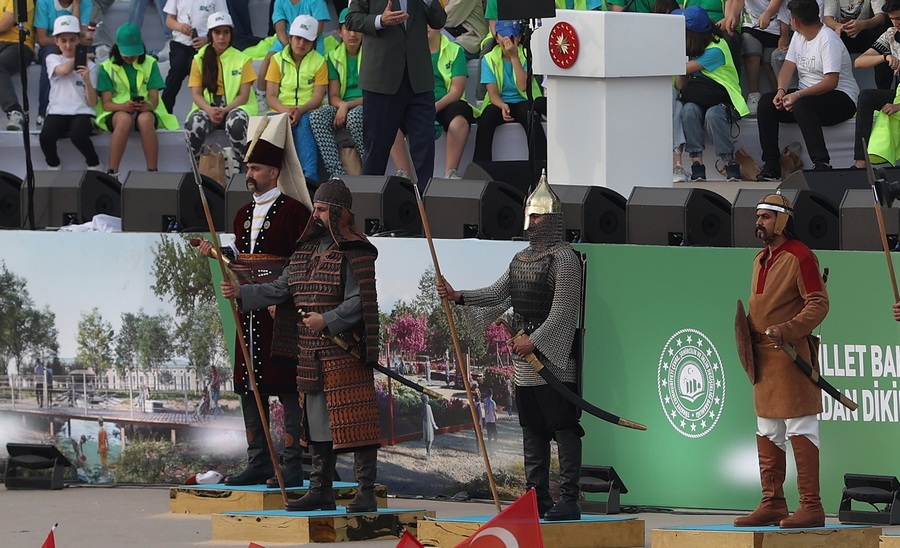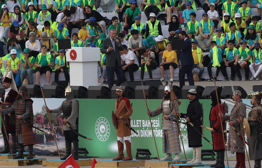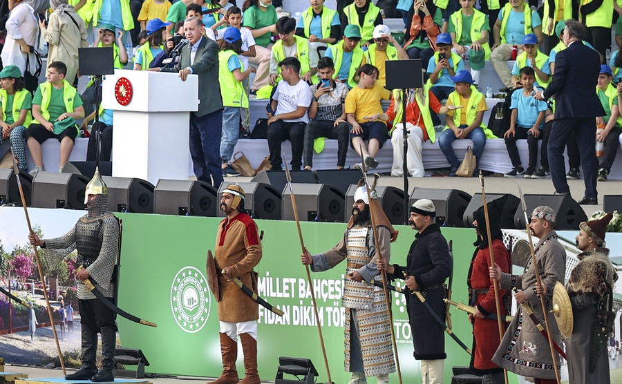 Ο Ερντογάν έκανε επίκληση στον “Μωάμεθ τον Πορθητή”, αναφέρθηκε στο όραμα της… μεγάλης Τουρκίας του 2053 και τον στόχο να “βάλουμε στα ράφια της ιστορίας τους σύγχρονους Βυζαντινούς”, έχοντας πίσω του ανθρώπους που φορούσαν στρατιωτικές στολές της Οθωμανικής περιόδου.